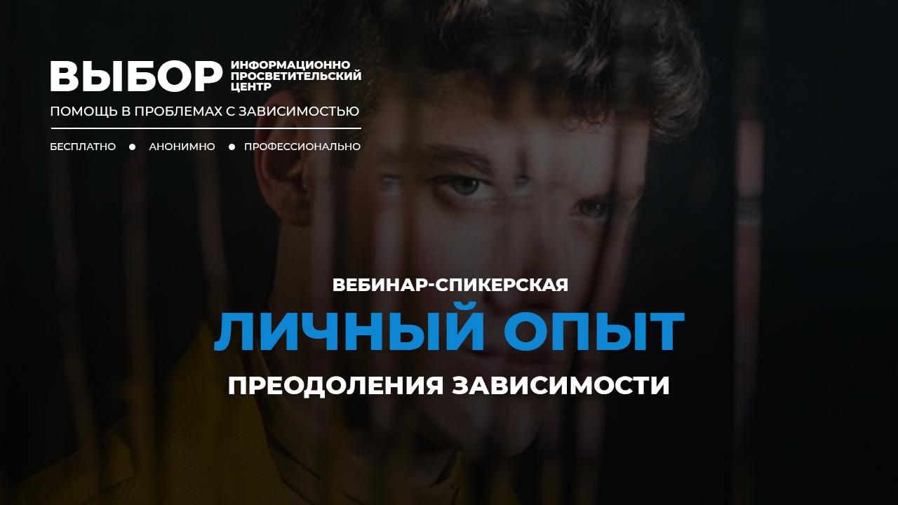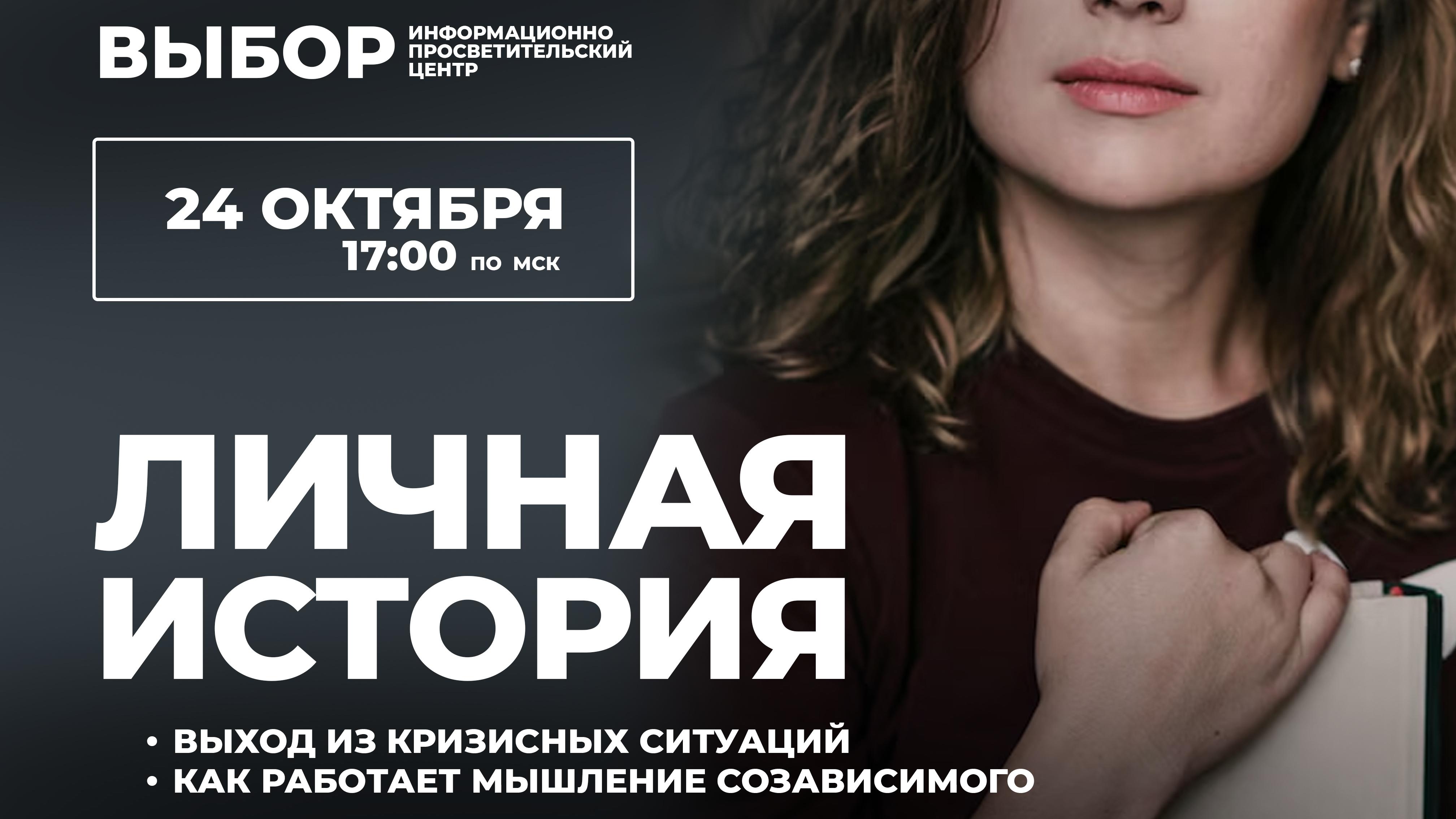 АНО ИПЦ "Выбор" - организация, оказывающая психологическую и просветительскую поддержку людям, столкнувшимся с тяжёлыми семейными и личными кризисами. Новый проект: «Жить свободно. Первые шаги» — курс для тех, кто страдает от эмоциональной зависимости и не может выйти из круга спасательства и боли.